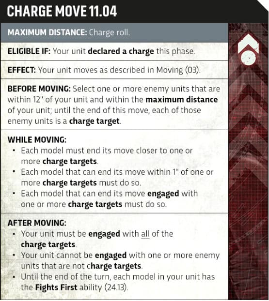 - Charges got a big quality-of-life glow-up: roll first, then pick targets. If one enemy is within 12″, you can declare, see the distance, and commit to what’s actually reachable.