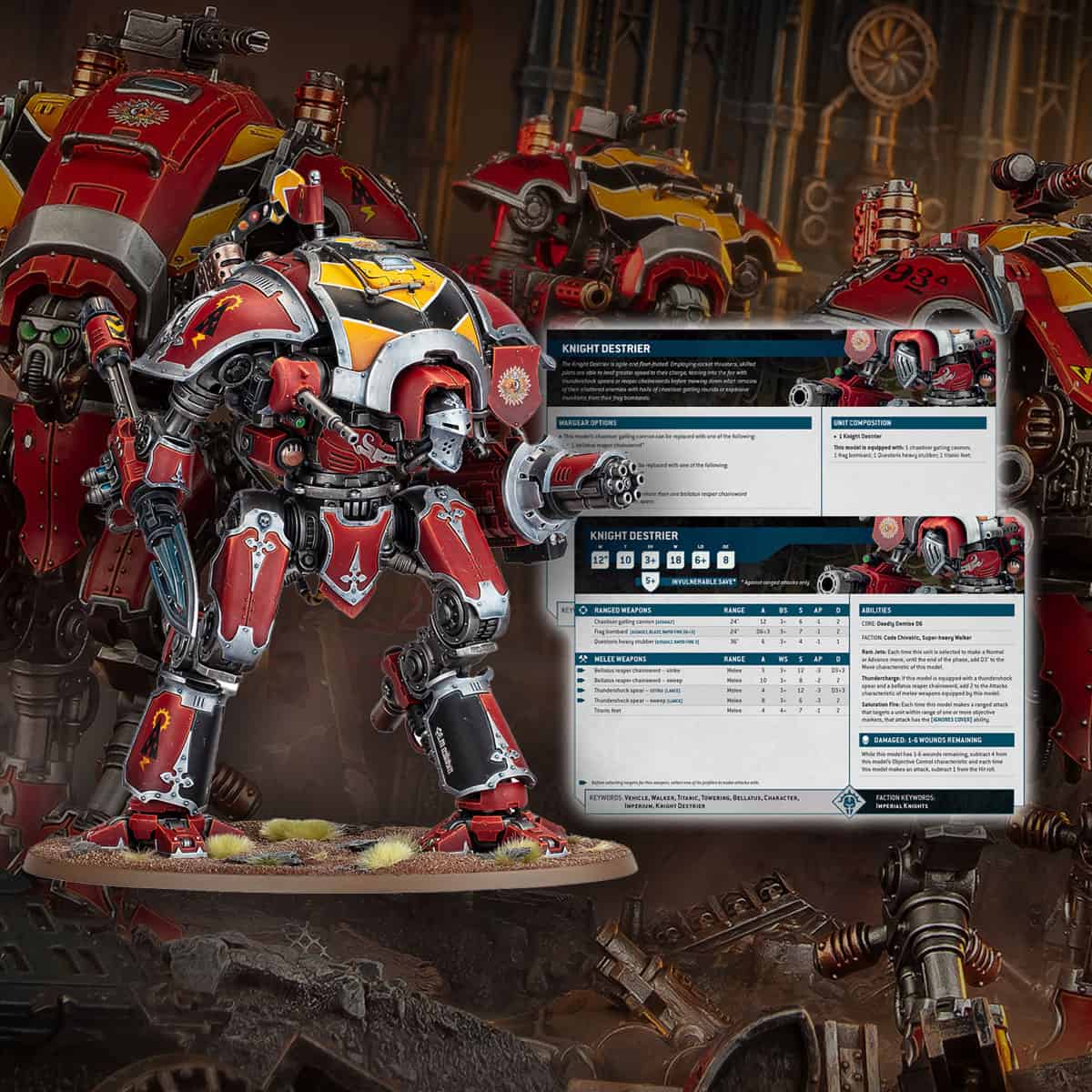 Meet the Imperial Knights Destrier, a Bellatus-class model with rocket boosters, a thundershock spear, and new rules datasheets for Warhammer 40k. Check out how the new Knight plays in 40k now. Read More