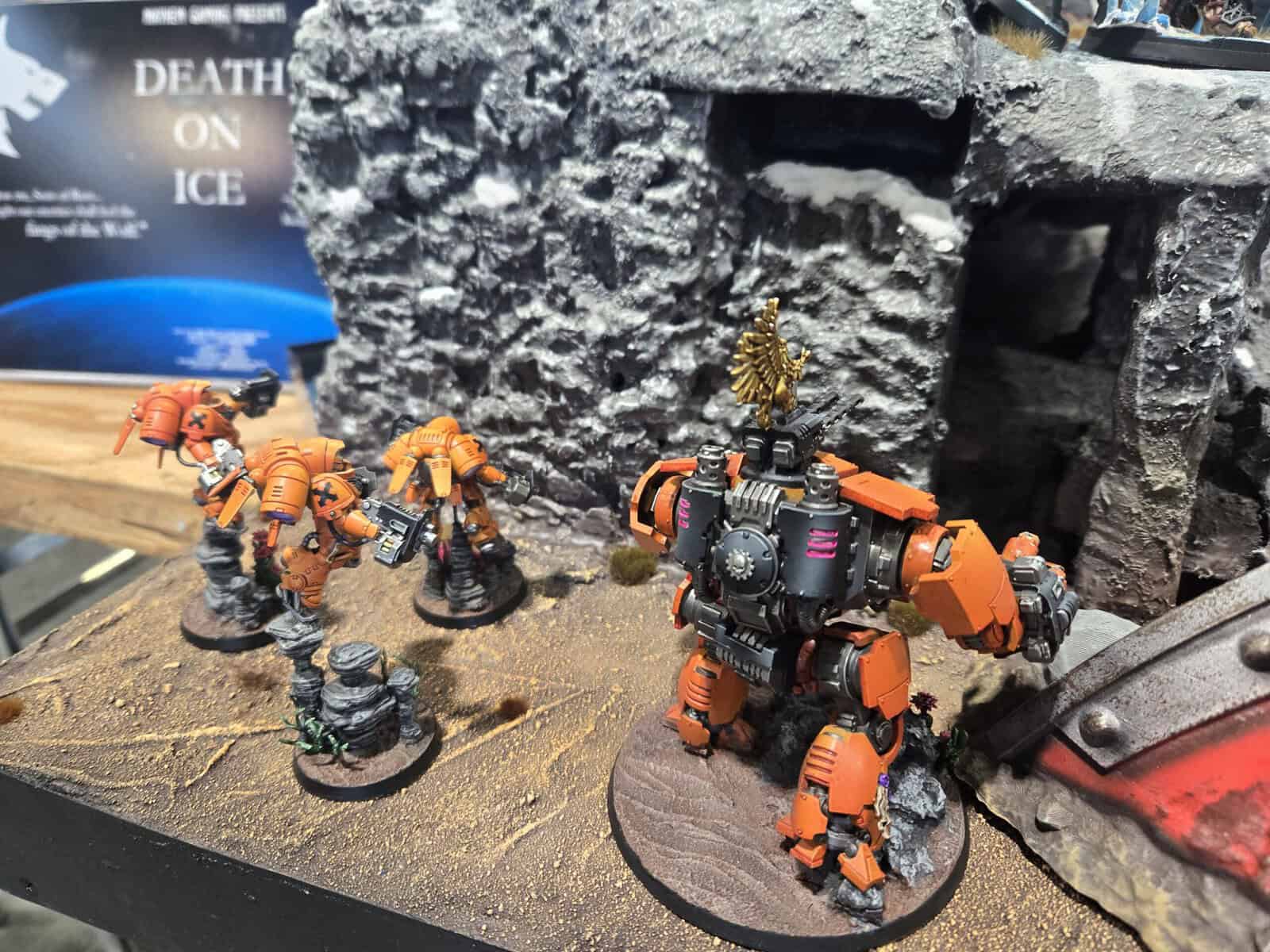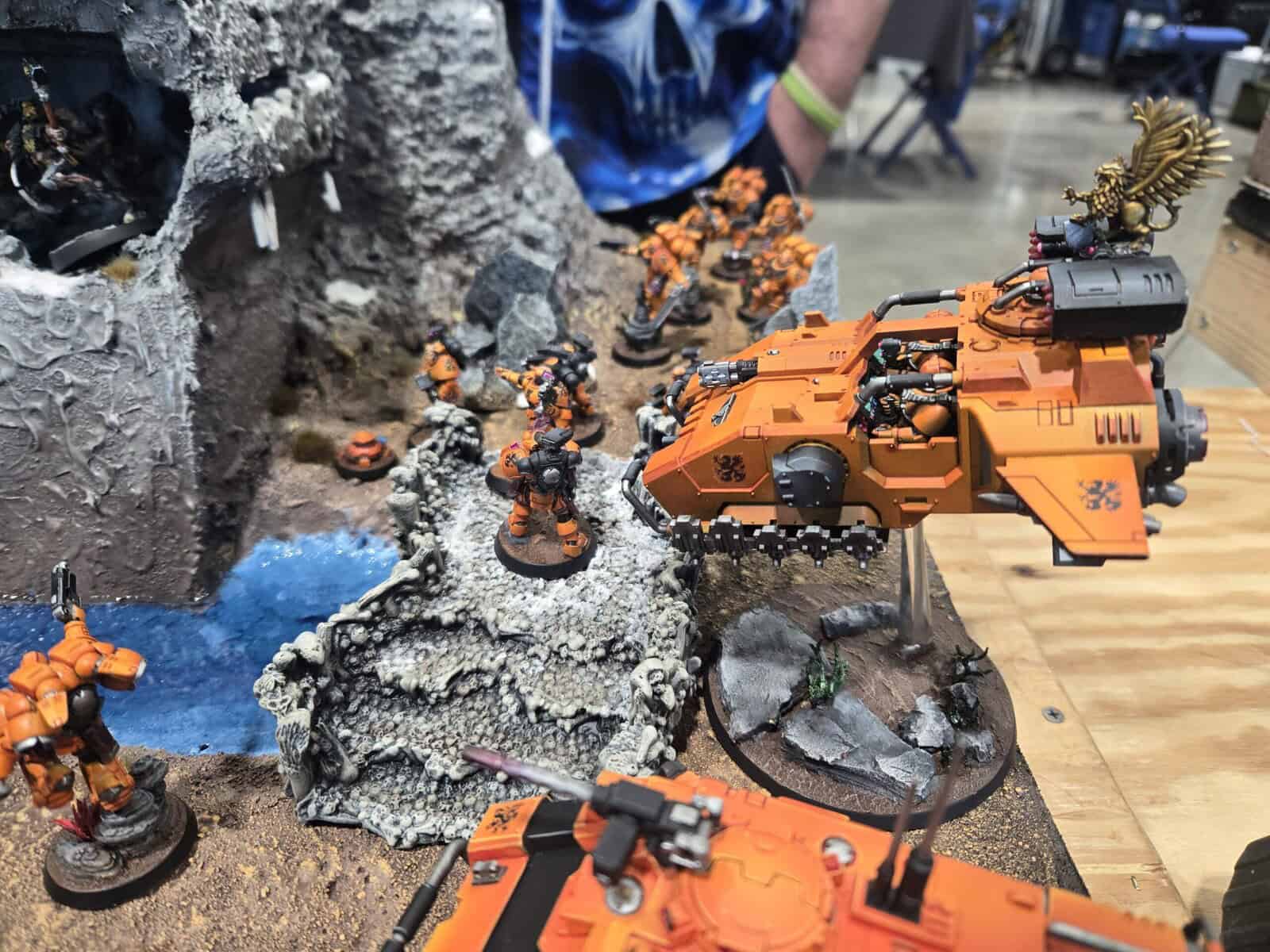 Orange Space Marines are always a risky move, because that color can go sideways fast, but this army absolutely nailed it. It looked awesome from across the room and somehow looked even better once you got up close.