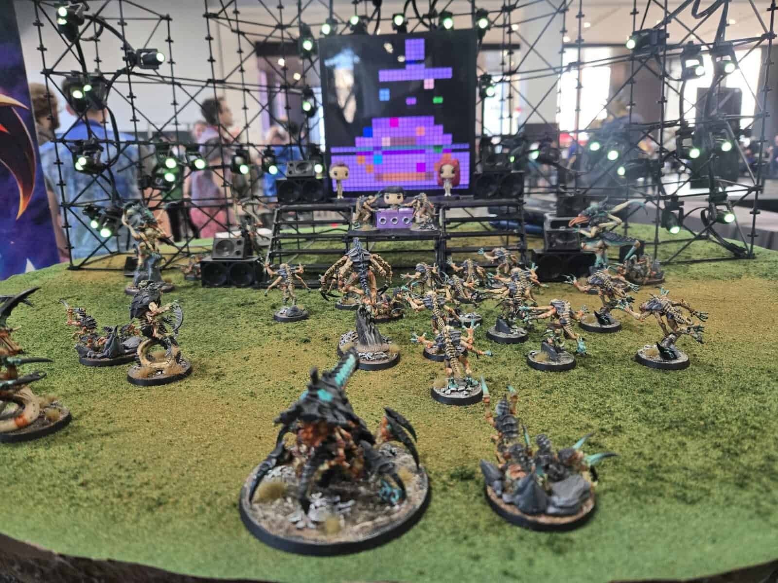 What’s better than harvesting biomass? Apparently, blasting K-pop before the battle starts so the swarm is in the zone. This Tyranid display had a super fun theme, and it stood out right away as one of the more creative boards at the event.