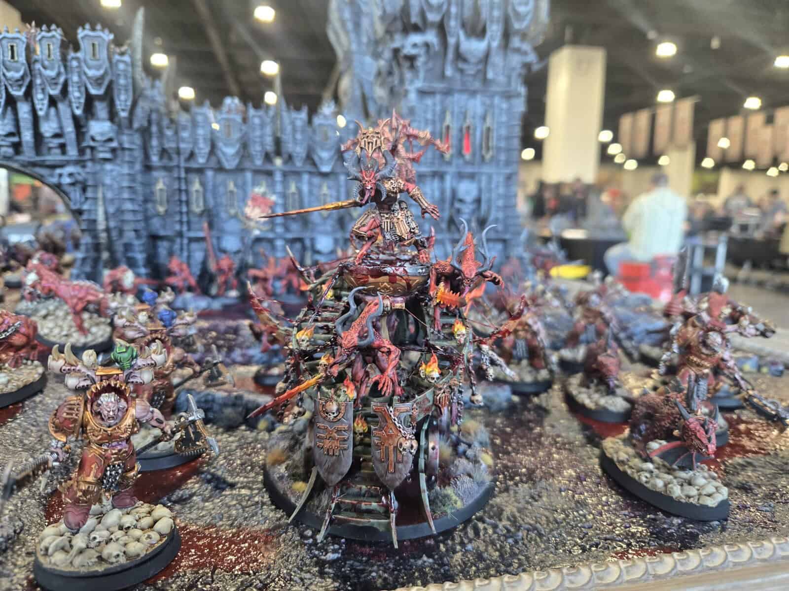 This display board showed what happens when the forces of Chaos actually manage to point themselves in the same direction for five minutes. Between the massive castle centerpiece and all the sharp paintwork across the army, this one looked great from top to bottom.