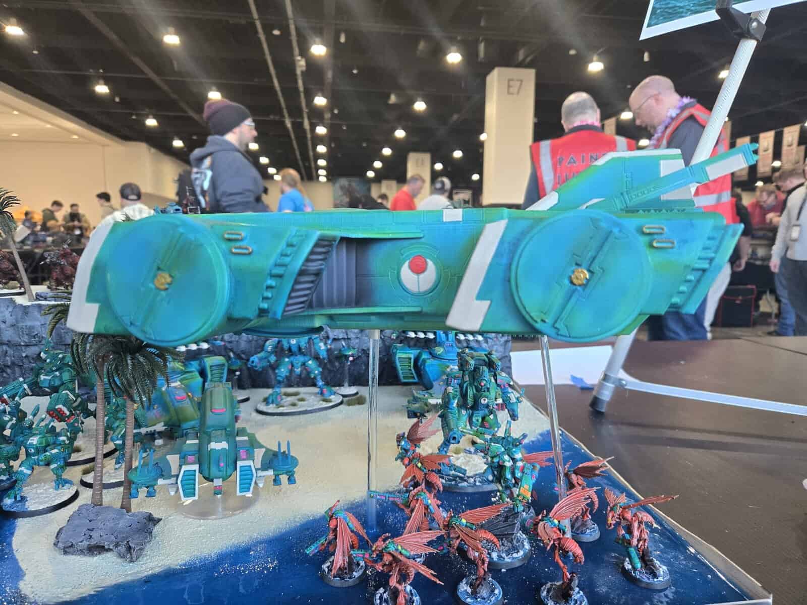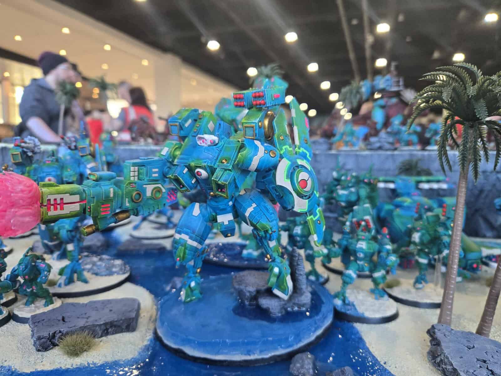 This Tau army had a killer ocean theme, a hand-built Orca, and enough Kroot support to make the whole force feel alive. The bright colors and huge centerpiece models made it one of those displays you could spot from halfway across the hall.