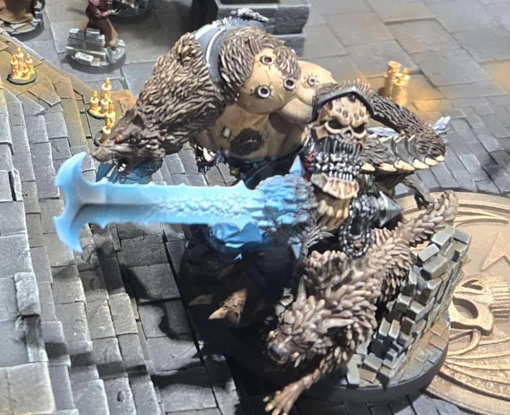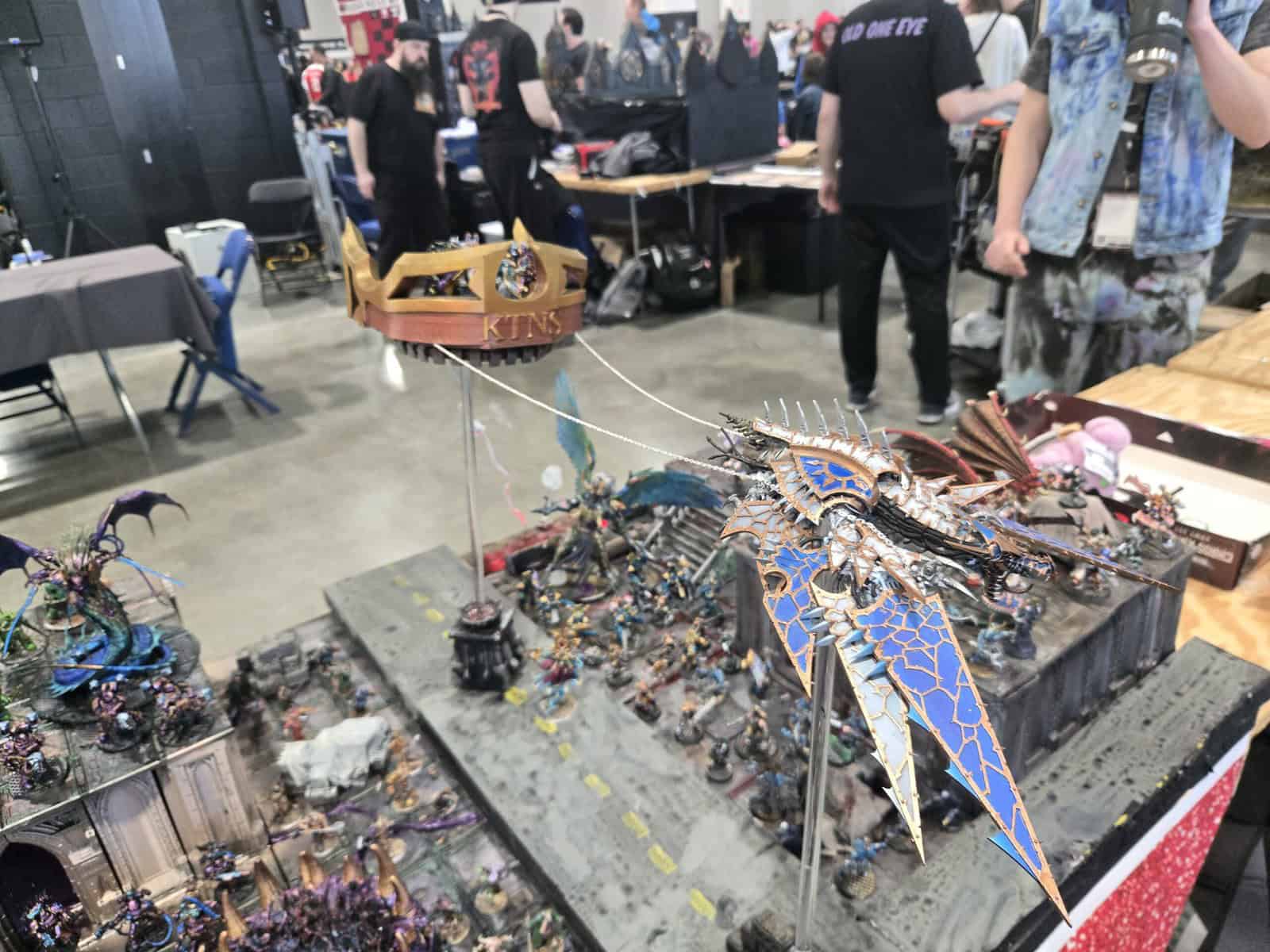 There were plenty of cool minis on this diorama, but the real star was the Tzeentch chariot being pulled by a Heldrake. It was wild, over-the-top, and exactly the sort of hobby madness that makes people stop and ask how somebody even came up with it.