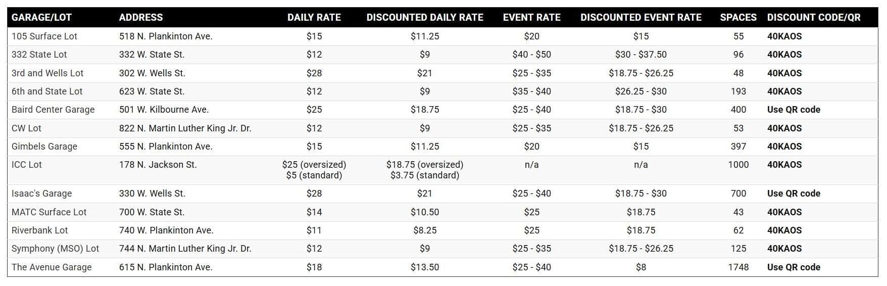 (Heads up: Parking rates might fluctuate based on demand and other local events. The rates listed below reflect AdeptiCon-exclusive discounts. Stay tuned for more details as we get closer to the event.)