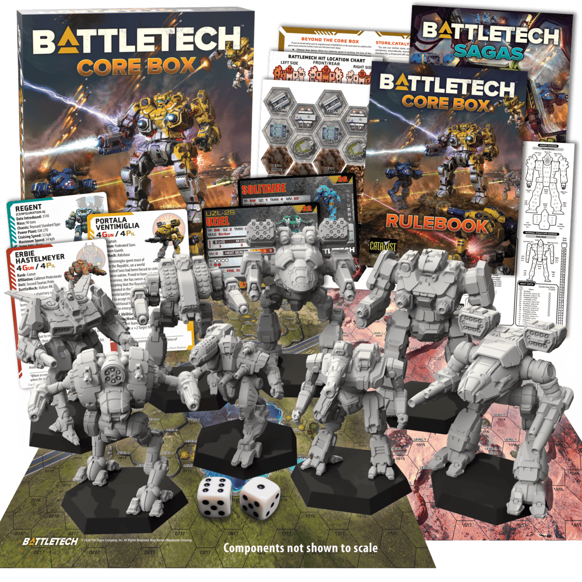 The box also includes eight miniatures pulled from across different eras of BattleTech lore, including the Hollander, Rakshasa, Solitaire, Uziel, Mad Cat Mk II, Vulture Mk IV Prime, Regent, and Eris. This gives the set a broader feel instead of just playing the “greatest hits” over and over again.