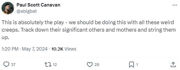 They employ Paul Scott Canavan, who just last year himself advocated for violence not just against his political opponents, but against their loved ones, suggesting that their wives and mothers be murdered.