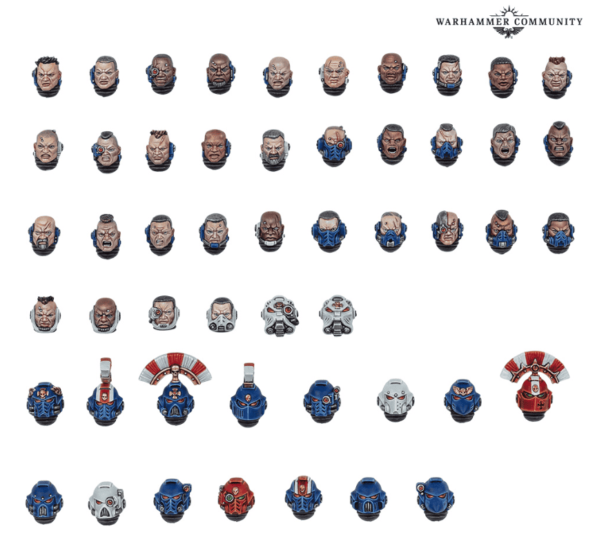 The kit comes packed with a mountain of new heads, 50 in total, giving players tons of customization options for their Primaris Marines. But tucked in there are several bald and certain hair-styled heads that caught everyone’s attention.