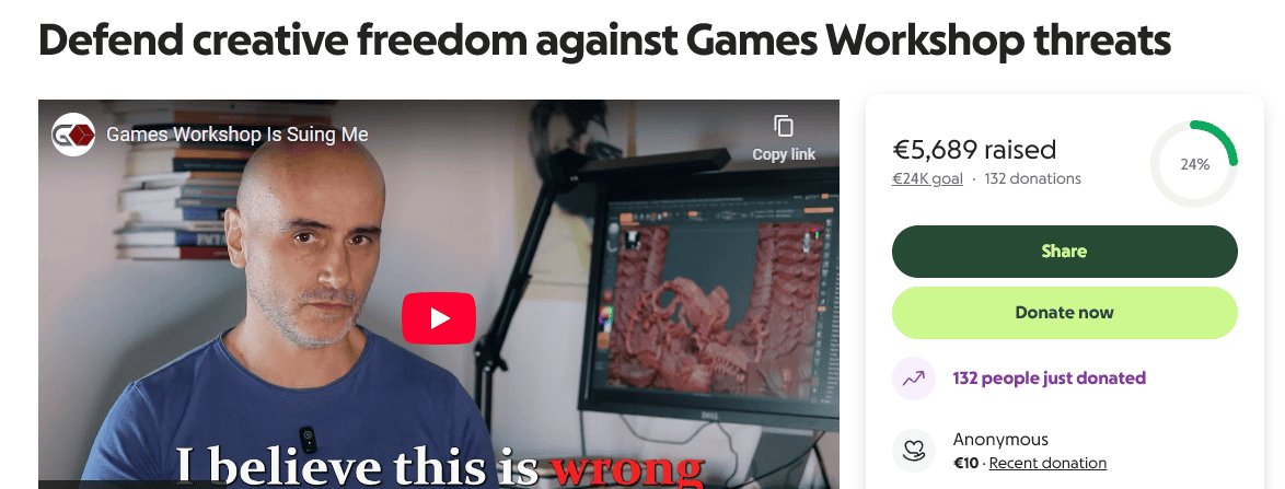 When GW finally responded, they still didn’t identify which models were supposedly problematic. Instead, they moved straight to takedown attempts on Patreon and MyMiniFactory, platforms where Ghamak has built a strong following.