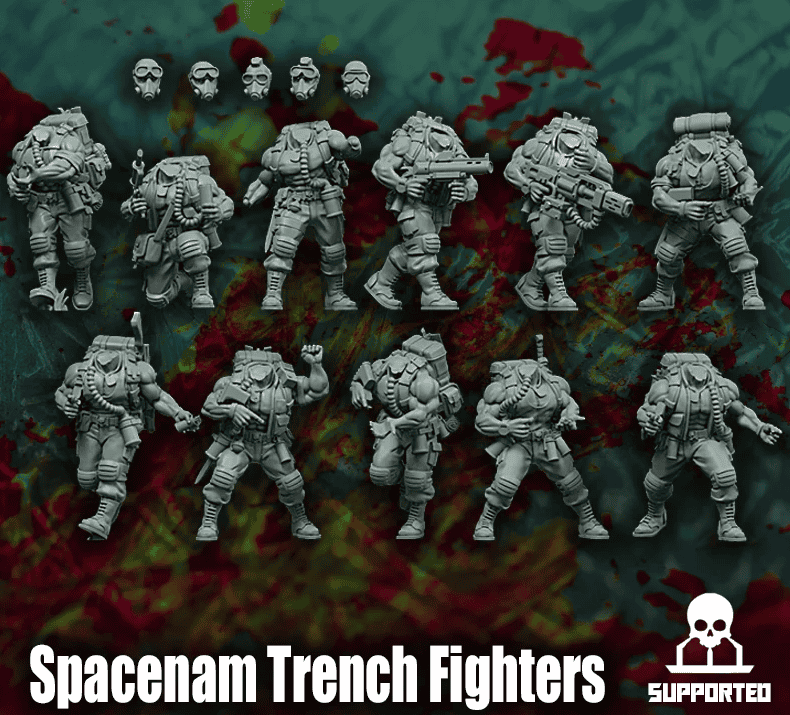 These new Spacenam Fighters STLs make perfect new Trench Crusade or Warhammer 40k Catachans miniatures for Astra militarum.
