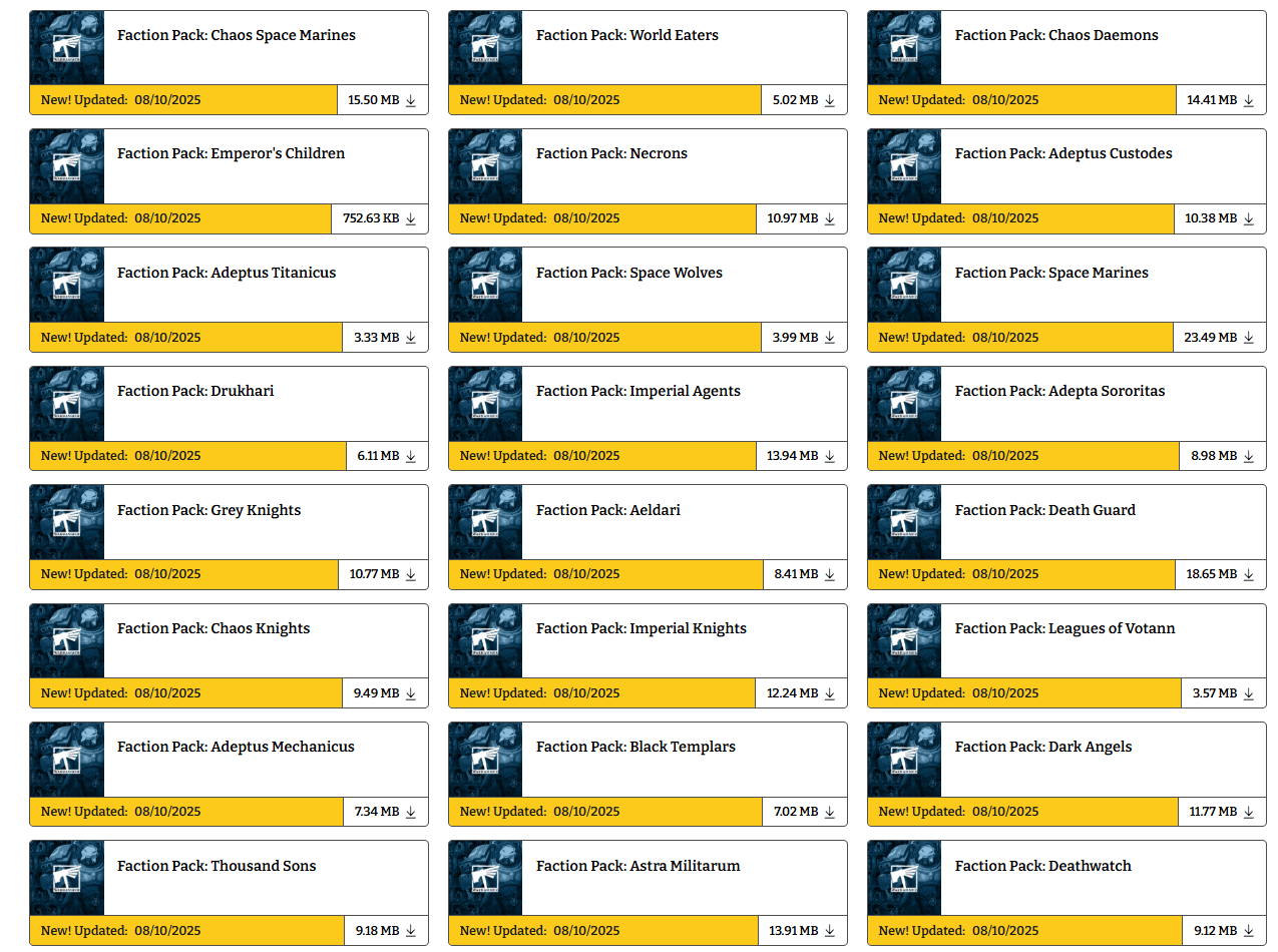 Games Workshop just made 40k easier to play; the new faction packs collect every rule, errata, and FAQ in one handy download for each army.