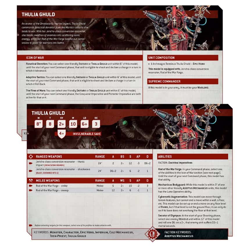 - AdMech got a new war boss: Thulia Ghuld, Archmagos Terminus from the Ordo Reductor, built to lead from the front and turn your Skitarii push into a moving demolition plan.