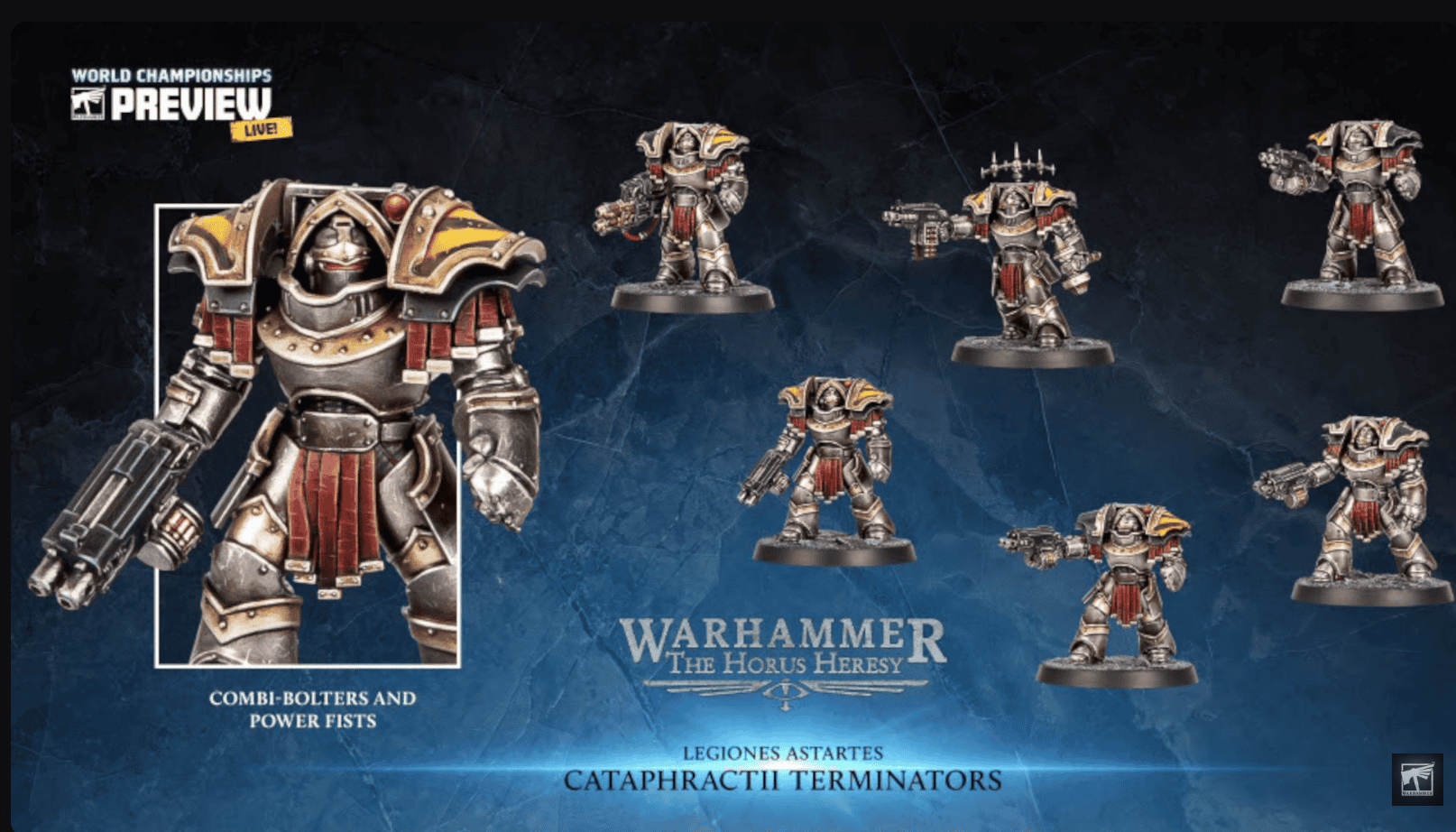 - Six Cataphractii Terminators with volkite chargers and power mauls