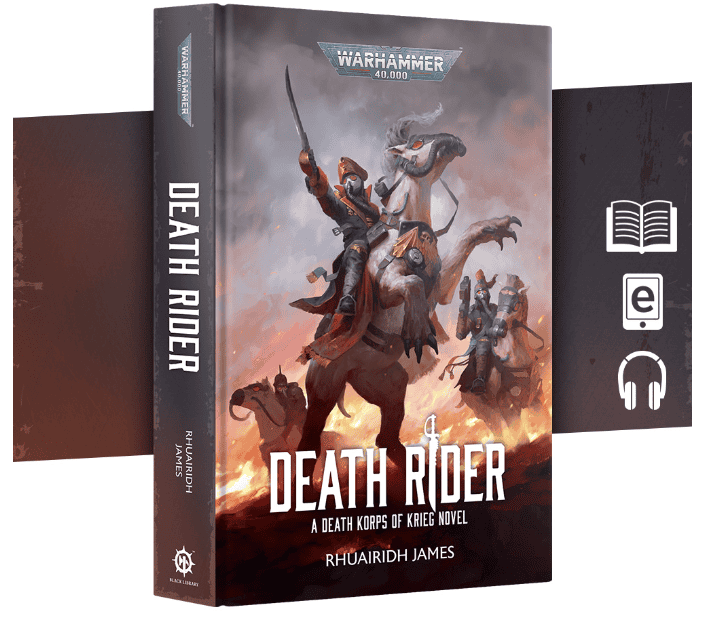 Death Rider follows Commissar Valian Hesh, a man trying to stop the Krieg 472nd Siege Regiment from enthusiastically marching into a suicidal assault against T’au lines. The planet is on a timer, set to die under the fire of an Imperial battleship, and the air is turning into poison. Hesh’s problem is brutal: keep the regiment alive long enough to pull back, or watch them charge into glory and get erased.