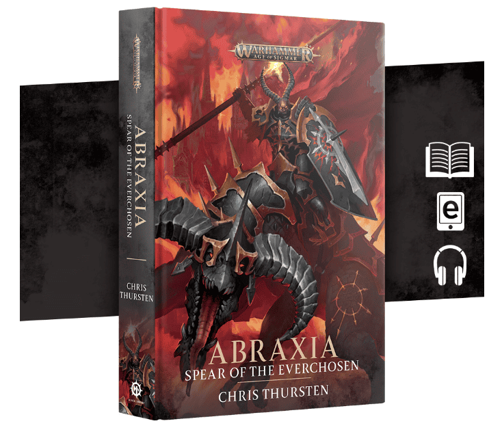 Abraxia, one of Archaon’s top lieutenants, has conquered the Phoenicium and raised her new stronghold, Blackpyre, atop its ashes. Her victory comes with a side of intrigue and betrayal, proving that ruling a city of Chaos isn’t all fire and glory. Abraxia: Spear of the Everchosen by Chris Thursten hits pre-order soon in hardback, eBook, and MP3 audiobook formats.