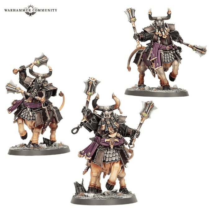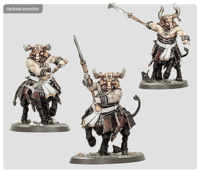 The box builds three Bull Centaurs or three Anointed Sentinels fanatical temple guards who chant scripture as they bludgeon intruders. Between the interchangeable horns, masks, and the 450-transfer sheet, there’s no shortage of infernal flair.