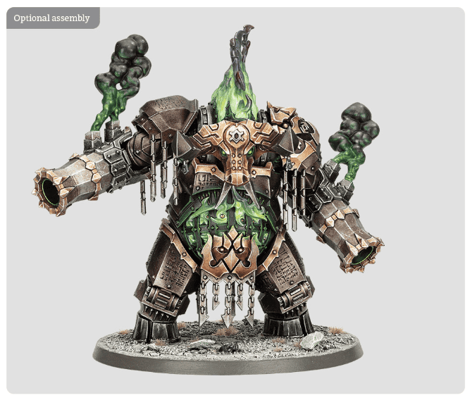 They can be built with bane maces for close combat carnage or immolation cannons to incinerate enemies from afar. Every kit includes alternate faceplates, horns, and stomach plates because fashion still matters, even for daemon robots.