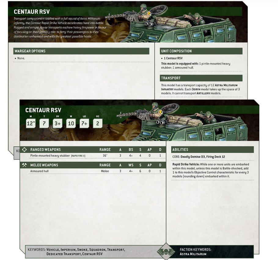 - Built to haul a real unit: 12-inch movement, Toughness seven, 10 wounds, a three-plus save, and room for 12 Astra Militarum Infantry makes it a serious transport option.