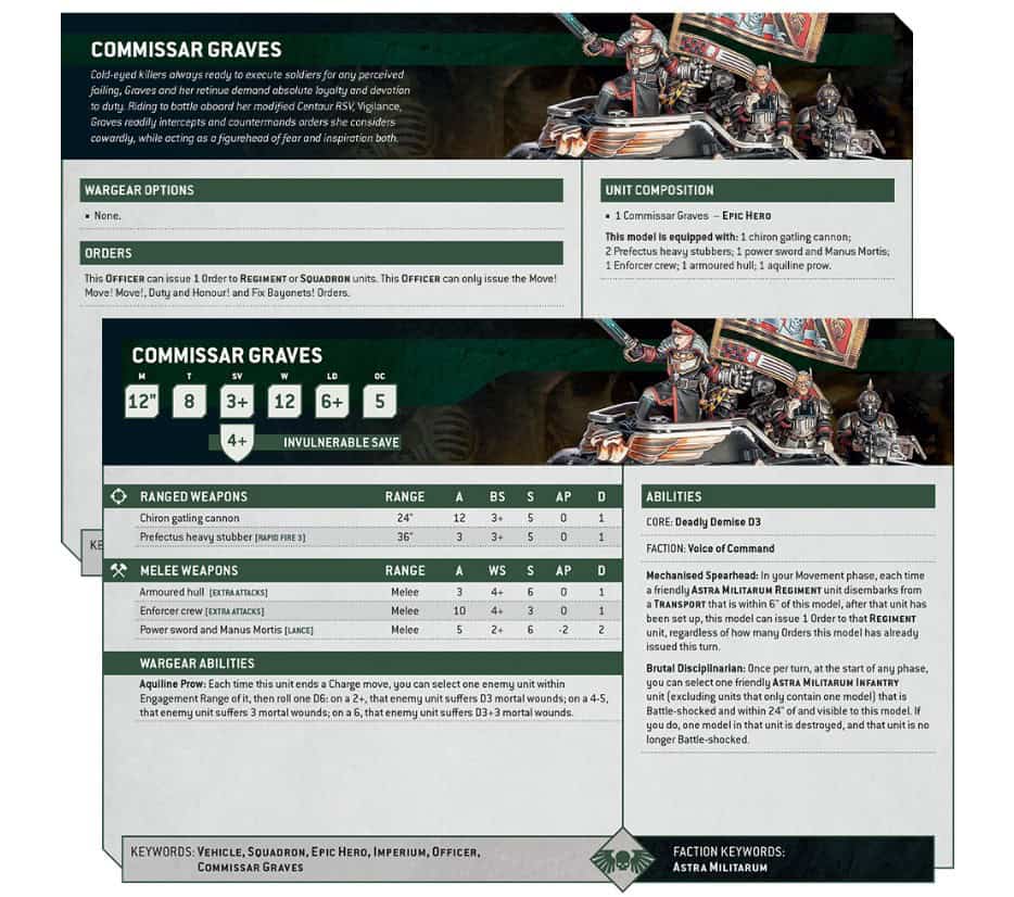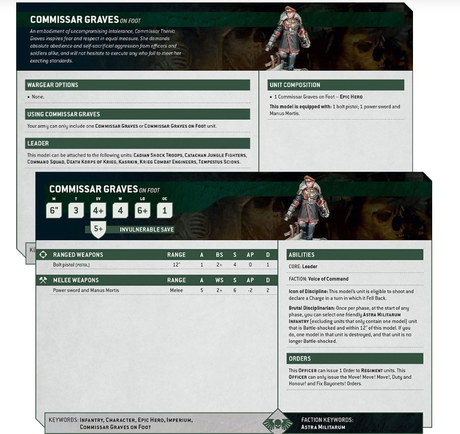 Here’s what you need to know about the new Commisar Graves rules datasheet: