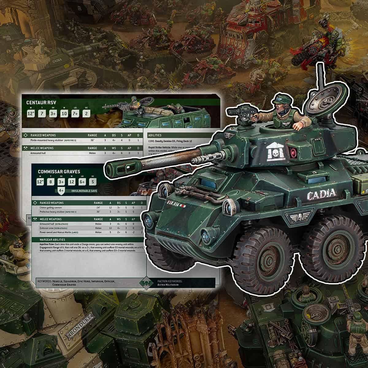 Armageddon’s new 40k Astra Militarum rules datasheets are bringing back classic Guard flavor with Commissar Graves, the Hippogriff AFV, and Centaur RSV rules.