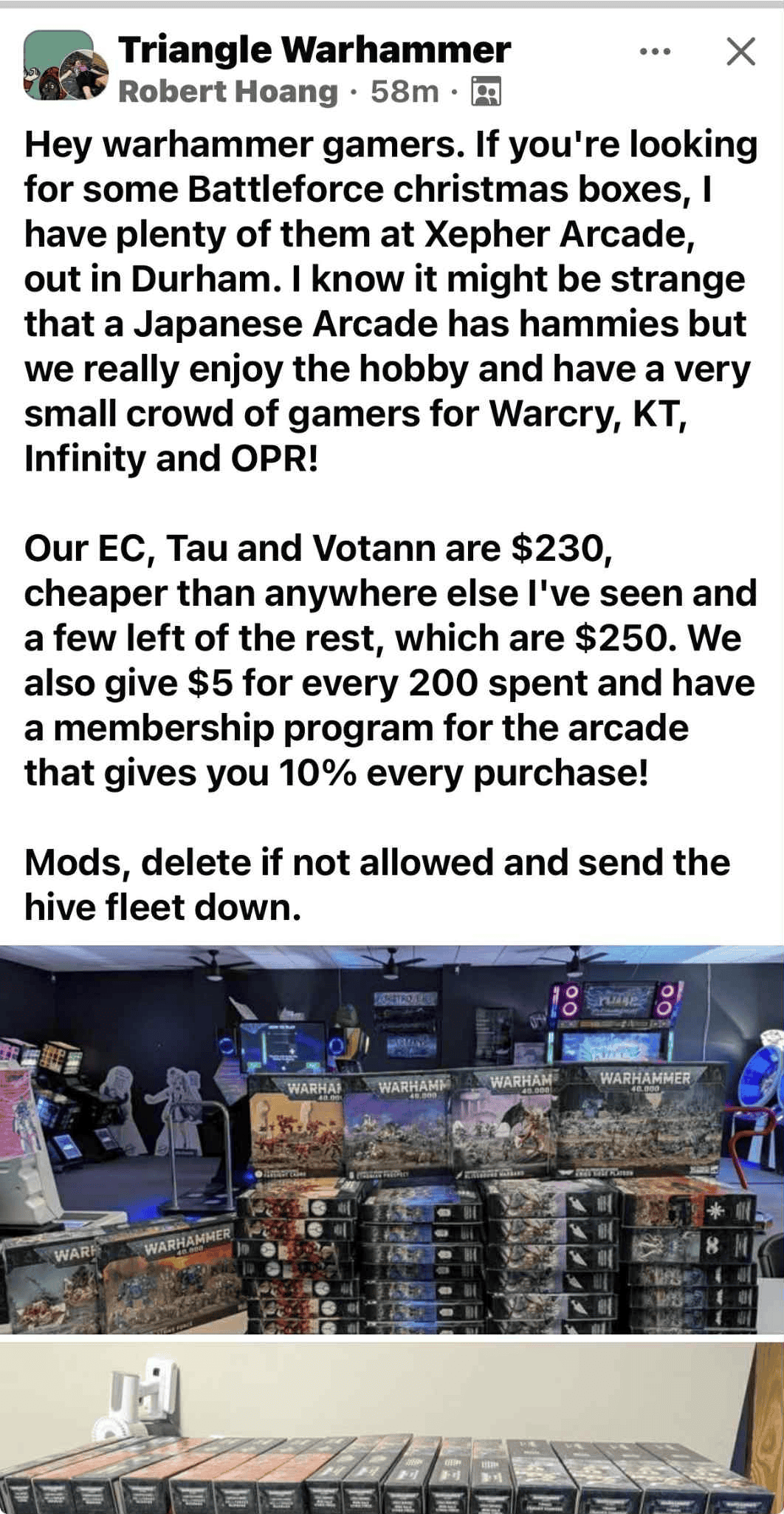 Let’s talk about one of the strangest parts of this story. An arcade that mostly runs arcade machines suddenly has full allocations of Christmas Battleforces and limited edition items usually found at real game stores.