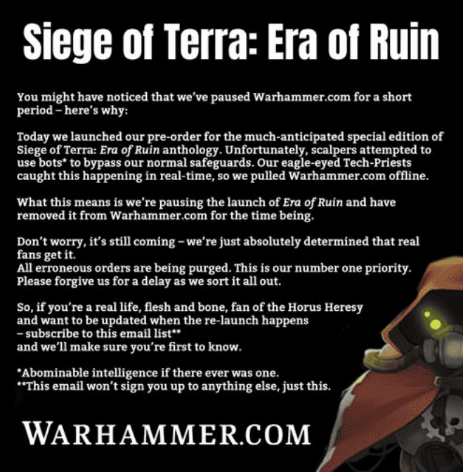 For years, Games Workshop has been stuck in a losing fight with scalpers, especially when it comes to Black Library special editions… Let’s be honest, with any exclusive run of a miniature or box.
