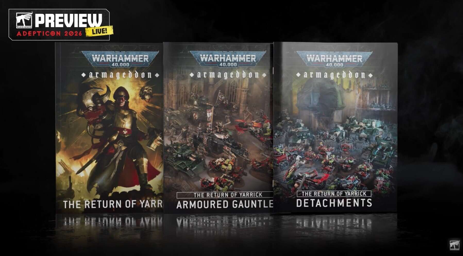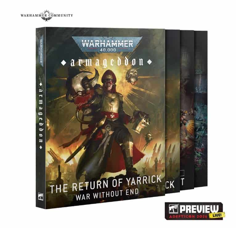 The reveal centers on Armageddon: The Return of Yarrick, a new major expansion for Warhammer 40,000 that comes in a three-book slipcase. One book covers the latest war for Armageddon; another adds six new vehicle-focused detachments for the Astra Militarum, Orks, and Space Marines; and the Armoured Gauntlet supplement pushes players toward tanks, monsters, and heavy war machines with added durability and upgrades.