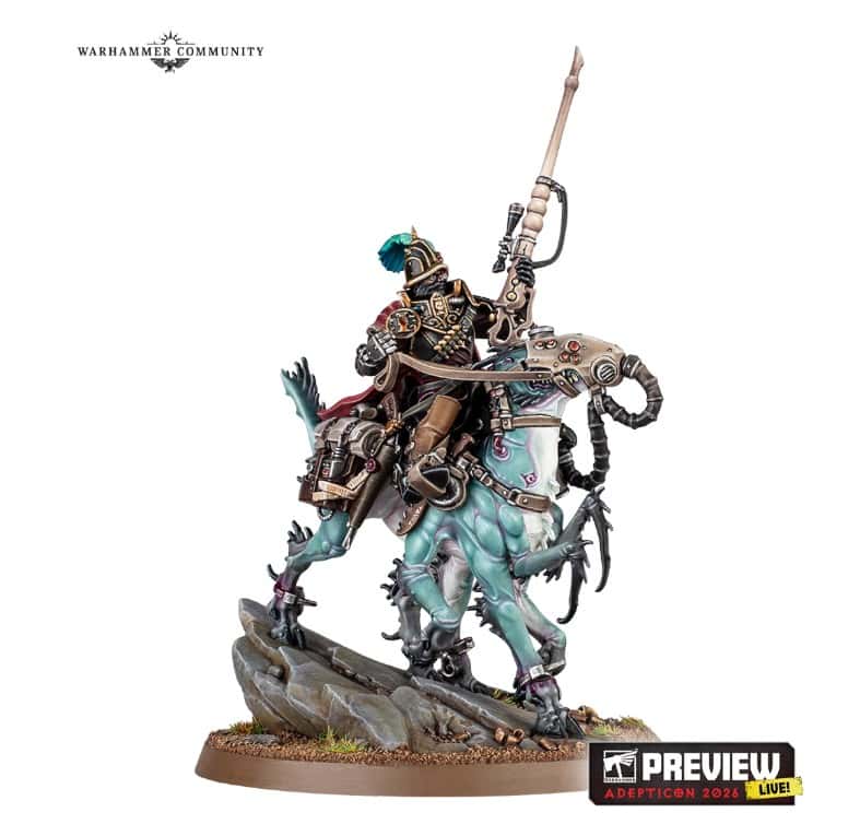 Kroyle might be one of the sleeper hits of the reveal. He’s an Ordo Xenos hunter riding a six-legged Garralisk and packing alien-hunting gear, with multiple head options for both rider and mount.