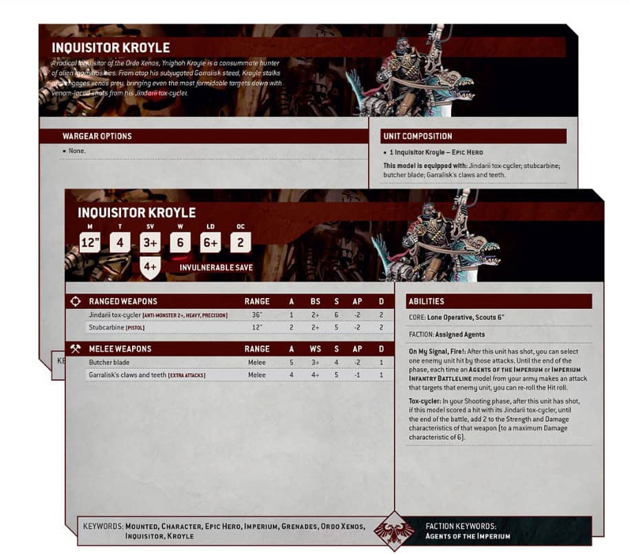 Campaign rules only land if they change how games actually play, and these two look like they were written with that in mind. Kroyle isn’t just “cool Inquisitor guy”, he’s a slippery angle-hunter who paints a target, pressures monsters and characters, and then hands your army the hit re-rolls to finish the job.