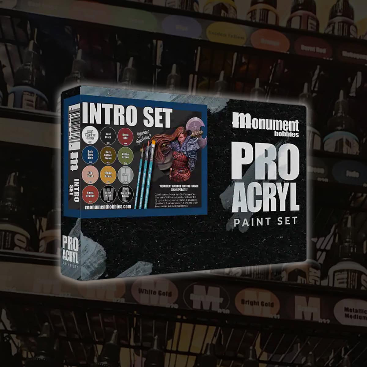 Monument Hobbies revealed a new PRO Acryl Intro Set featuring 12 colors, a primer, wash, and Dauntless brushes perfect for starting to paint miniatures!