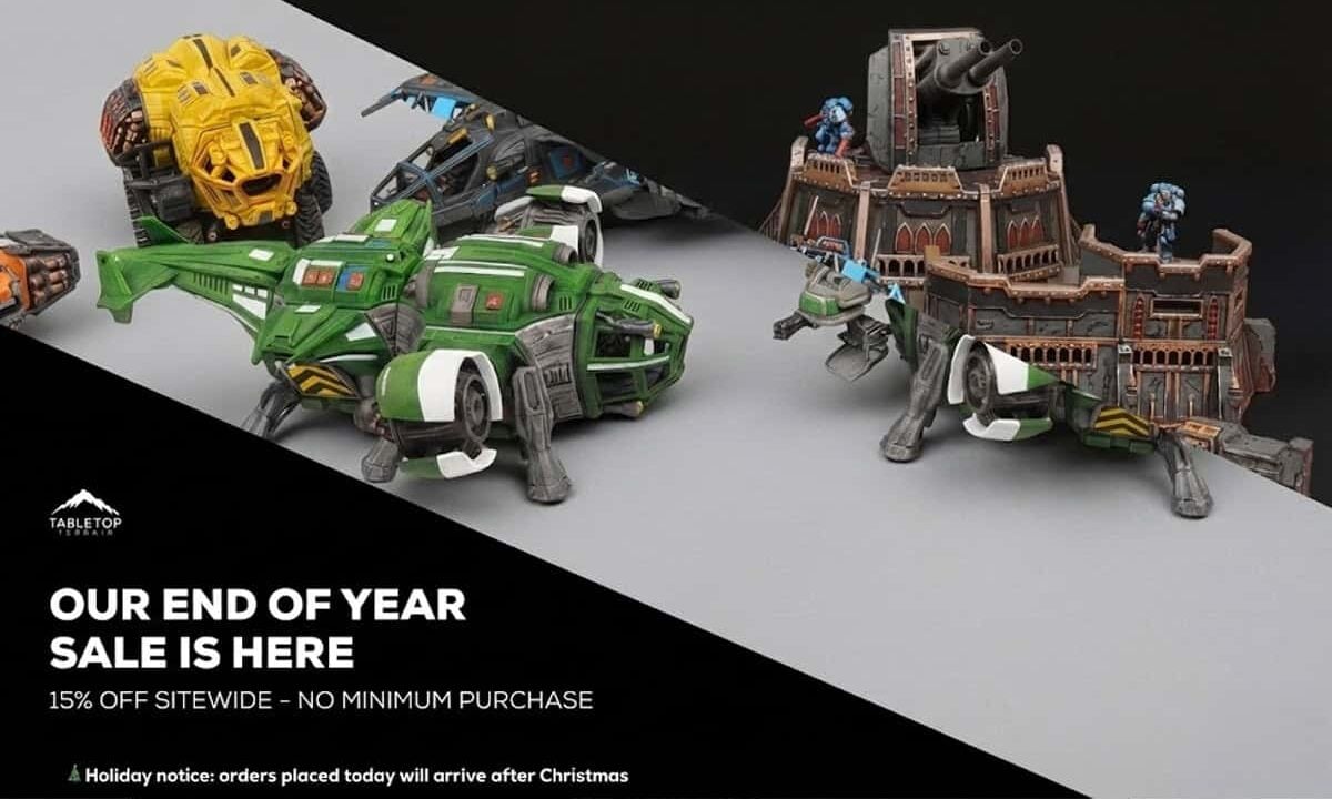 Don’t miss the Tabletop Terrain Year-End Sale, and get 15% off all their products for games like Warhammer 40k, Battletech, and more! Read More