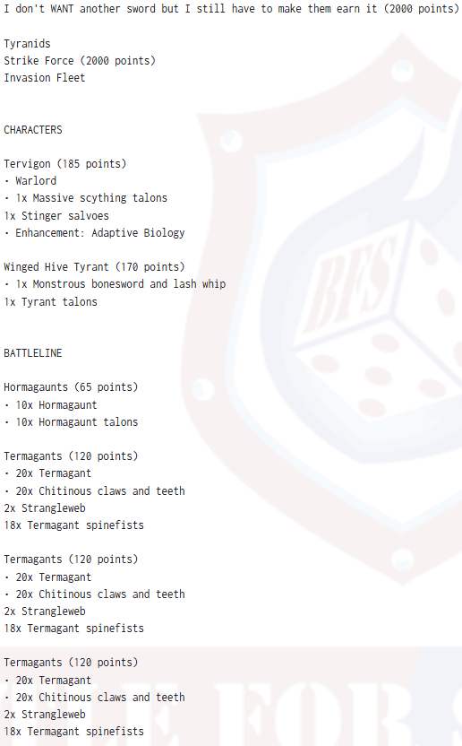 This list feels like how Tyranids are expected to overrun you, just constantly being harder to kill than you’d expect and more annoying from layers of buffs.