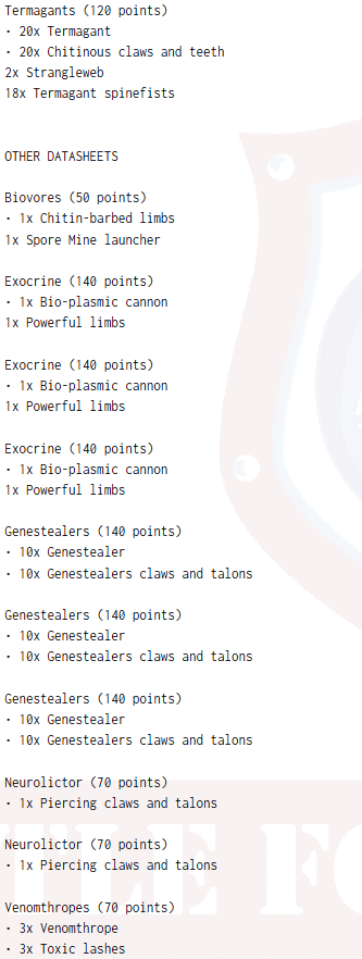 There’s more support for the Termagants as well, with the Venomthropes giving them all an aura of Cover and Stealth, making them wildly difficult to deal with outside of combat.