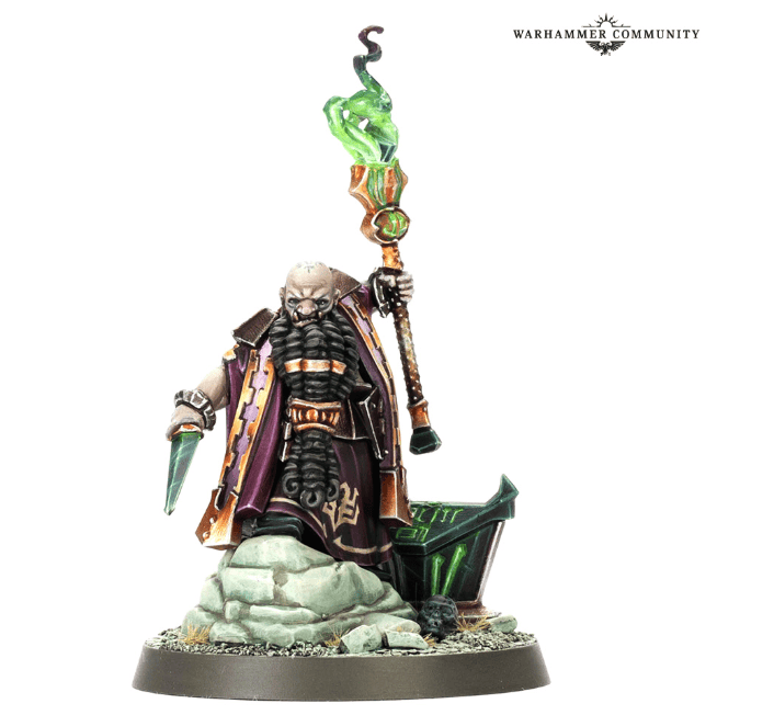Also, another thing to think about, he comes on a larger base for that obsidian altar, so you’ll want to swap him onto a standard 32mm base for Matched Play Tournaments.