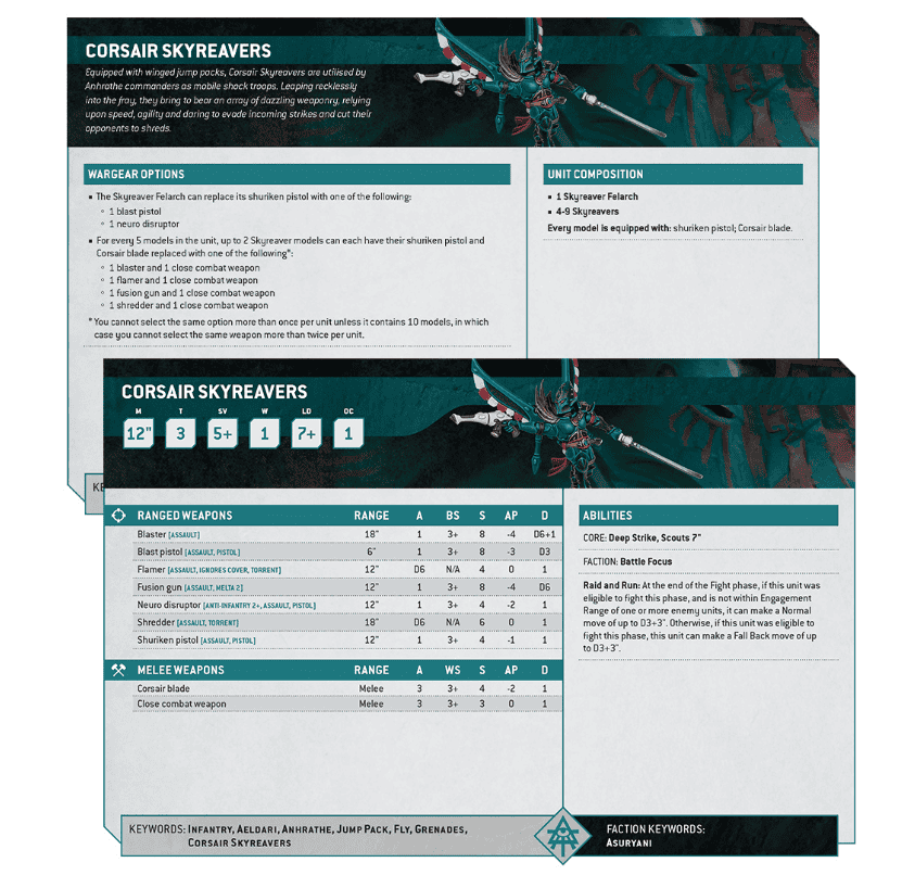40k Corsair Skyreavers Rules Datasheet: Hit Fast, Leave Faster