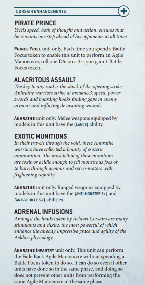 Warhammer 40k Aeldari Corsairs Detachements: Enhancements