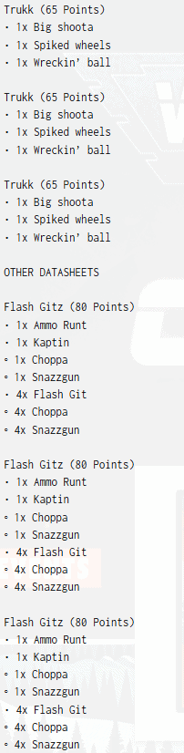 And, of course, it wouldn’t be a proper Ork list without Trukks—four of them, to be exact. These things provide just enough protection to make the early turns survivable, just enough movement to keep people guessing, and just enough dakka to remind everyone they’re still Orks.