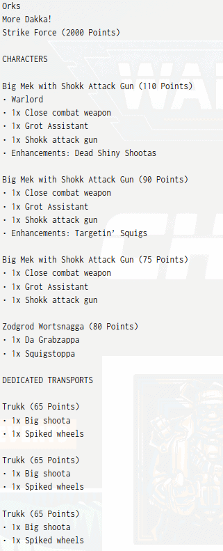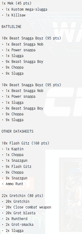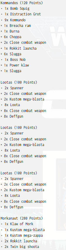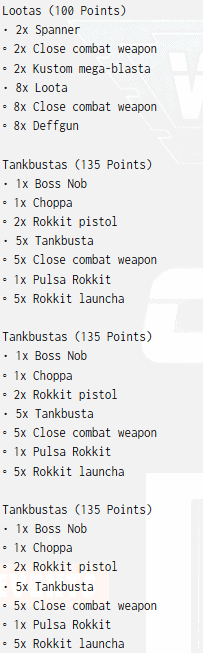 Pair that with two units of Tankbustas, and you’ve got enough AP to ruin any Knight’s weekend plans.