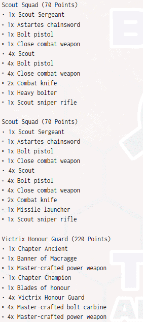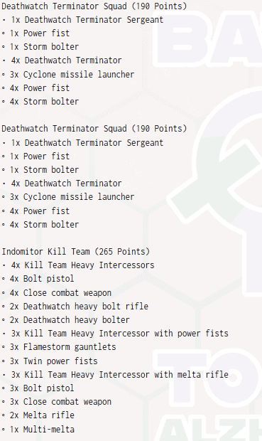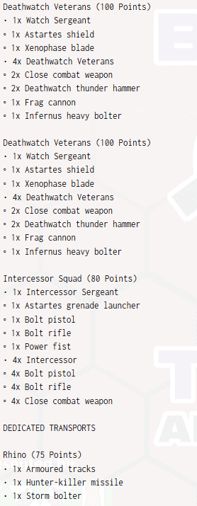 This Deathwatch list looks like the kind of army that marches straight to the middle of the table, parks on an objective, and tells your opponent to come try and move it.