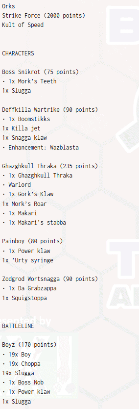 This Orks Kult of Speed list turns the table into a straight-up traffic jam with chainblades. It comes screaming out of the gate with Deffkoptas, Warbikers, and a Dragsta, causing headaches from every angle, then backs that up with a real mid-board brawl once Ghazghkull and the Boyz crash in.