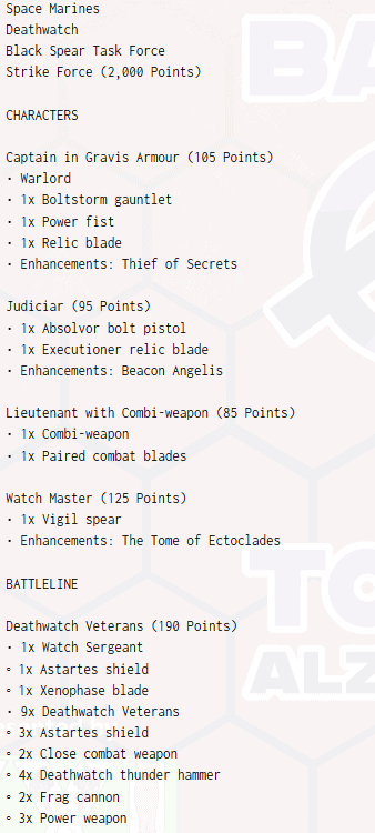 3rd Place: Mark Hertel, Deathwatch (Space Marines) Army List