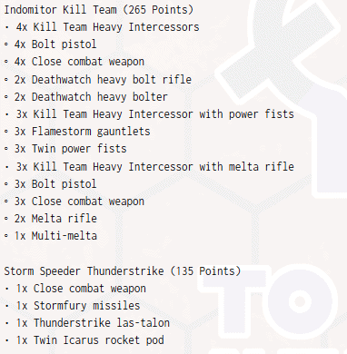 The double Indomitor Kill Teams do most of the hard work, bringing the kind of durability and mixed damage output that makes target priority a mess, while Terminators and Veterans add even more pressure at range and once the fighting gets close.