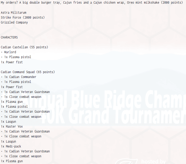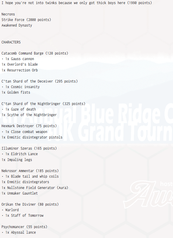 Final Thoughts from us on the Blue Ridge Championship GT Army Lists