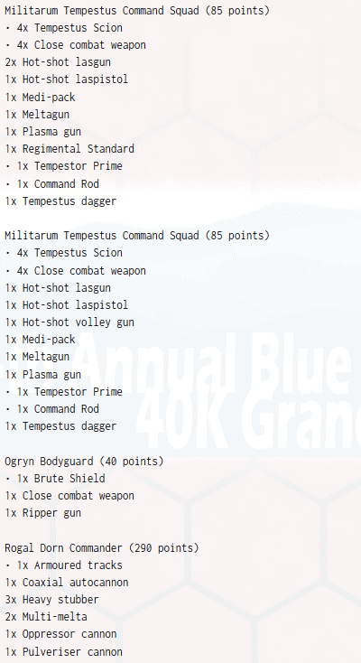 3rd Place: Duncan Bluhm, Astra Militarum Army Lists (Imperial Guard)