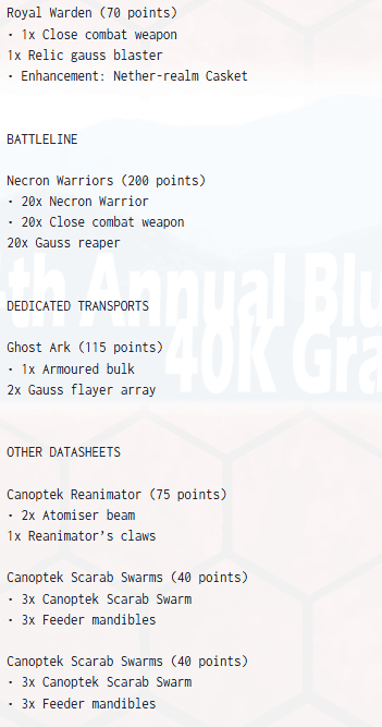 1st Place: Joshua Campbell, Necrons Army Lists