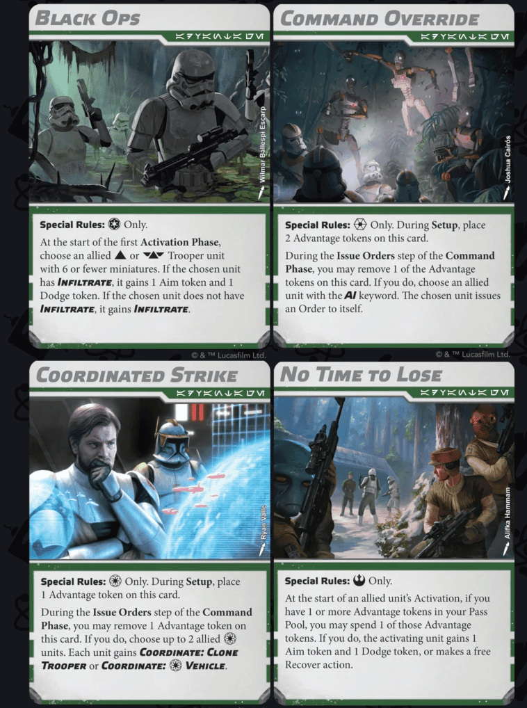 The latest Legion update drops a ton of new content that shakes up how armies hit the table. Players get new Battle Cards like Outflank and Supply Run, adding sneaky flanking moves and supply-grabbing chaos to missions. Four Advantage Cards now give each faction its own flavor, like Rebels spending Pass tokens faster or Clones chaining coordinated attacks like pros.
