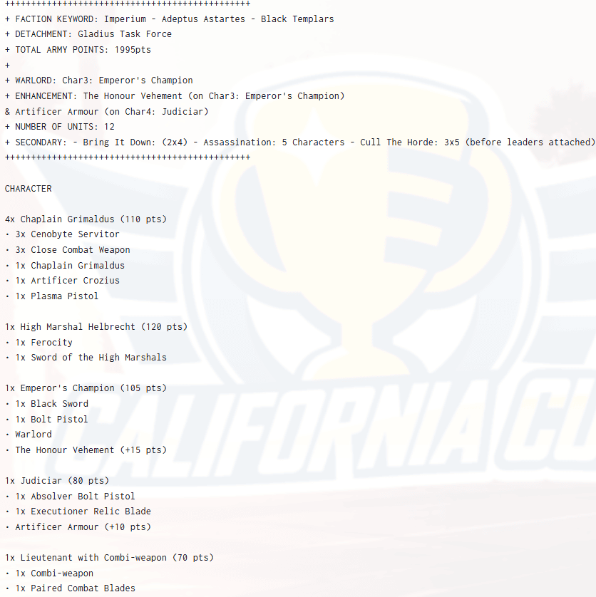 2nd Place: Celeste Lorch, Black Templars Army Lists