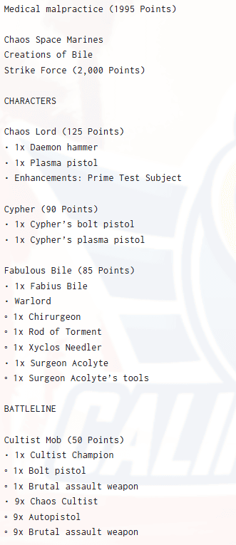 3rd Place: James Thomas, Chaos Space Marines Army Lists