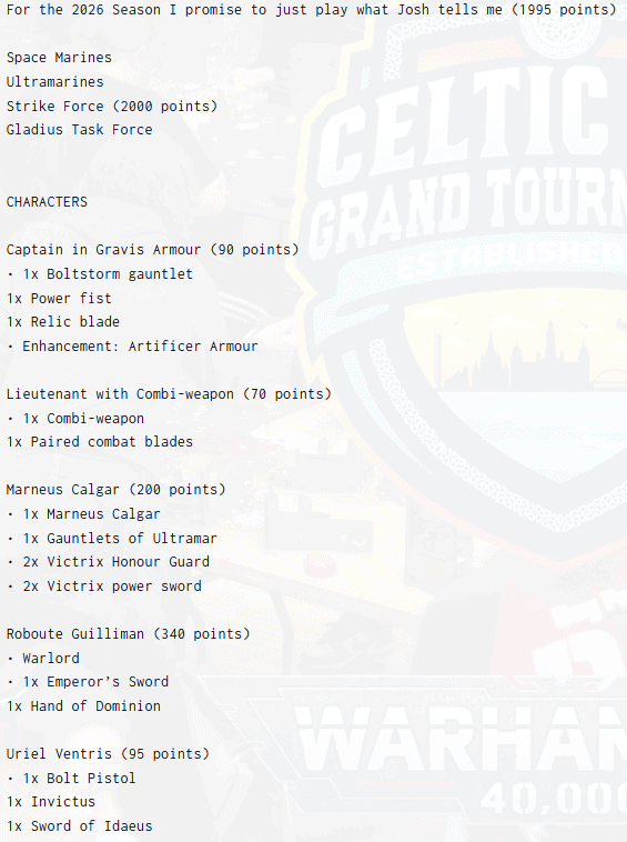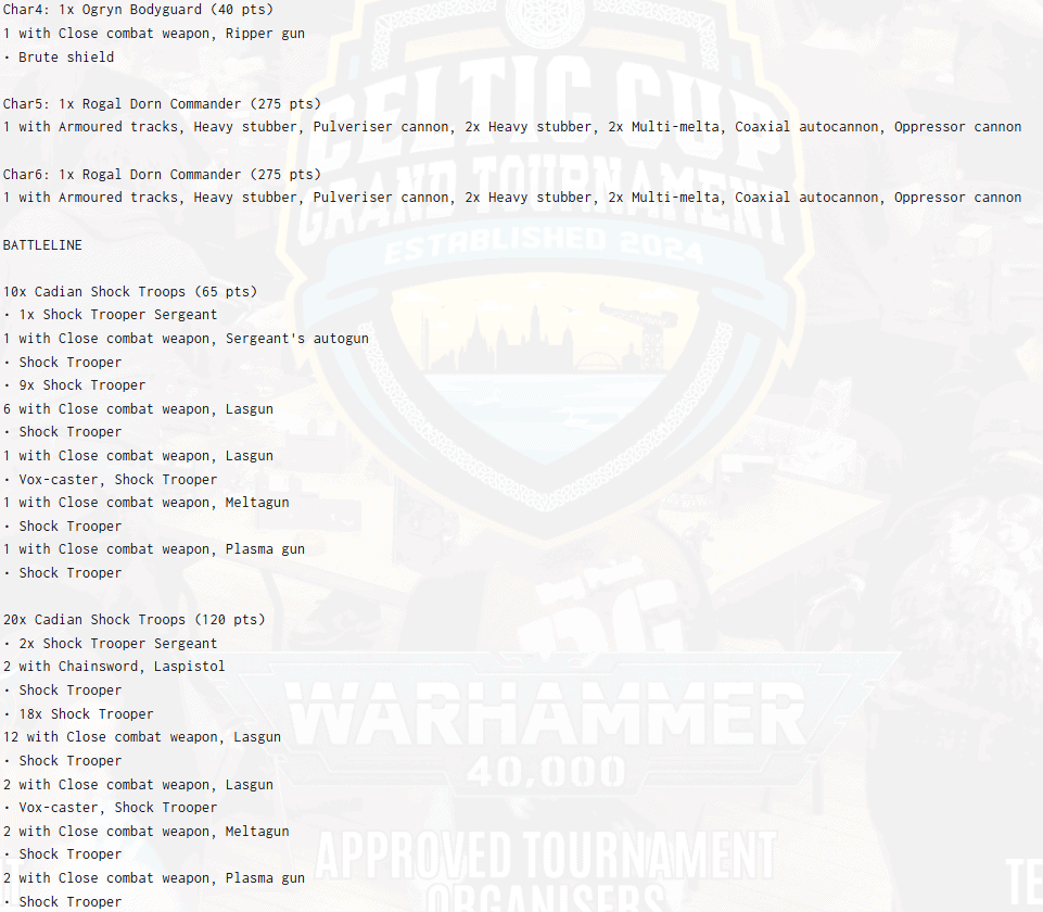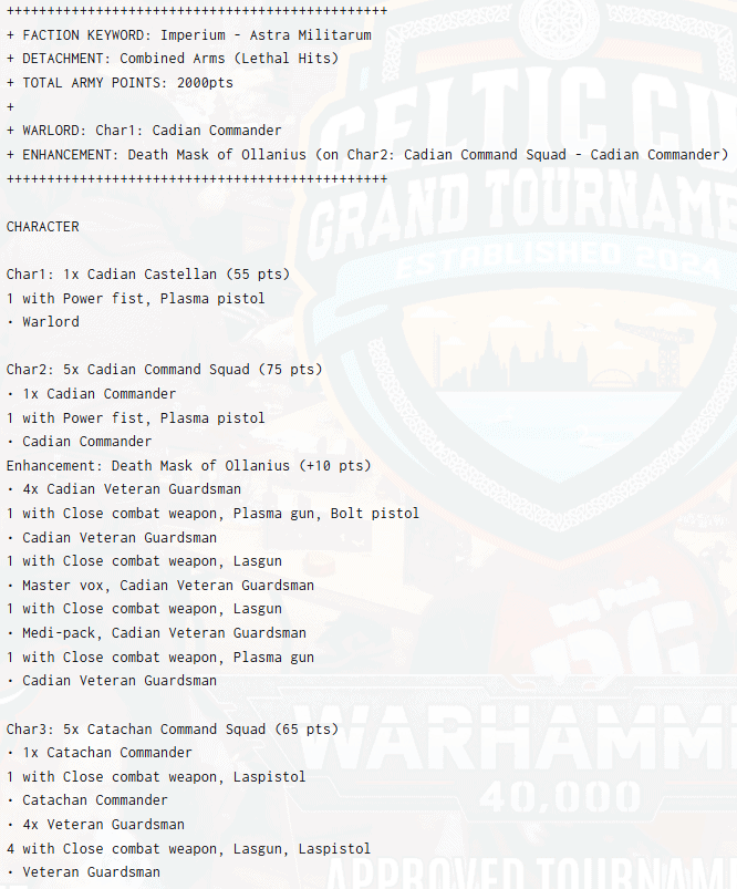 Top 40k Tournament Army Lists: Celtic Cup GT