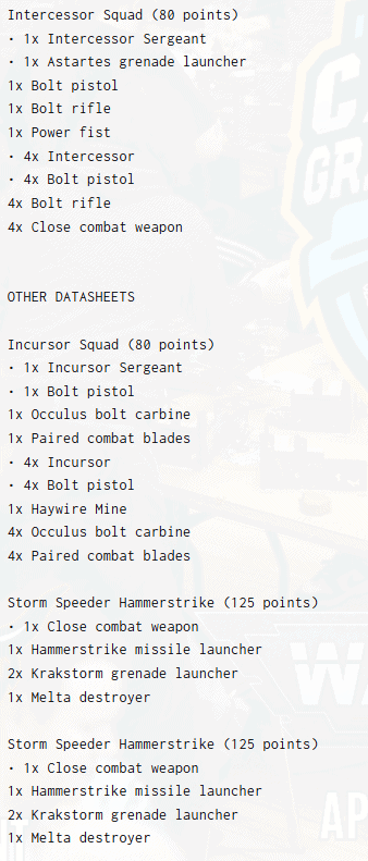 Then the real firepower rolls up. Two Storm Speeder Hammerstrikes bring melta and missile punch, deleting vehicles and elite threats before they can threaten Guilliman’s block.