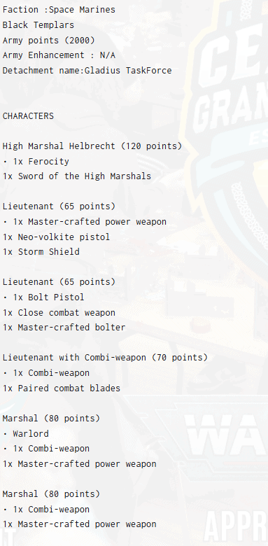 3rd Place: Martin Sloan, Black Templars (Space Marines) Army Lists